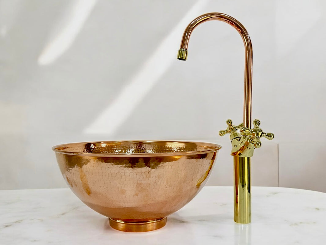 Enhance your bathroom with our beautifully crafted brass faucets Their warm golden hue adds elegance and timeless charm, while handmade craftsmanship ensures lasting quality. Over time, a natural patina