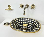 Transform your space with the elegance of our Handmade Brass Wall-Mounted Faucet with Bone and Resin Inlays. Designed for a 3-hole installation, this faucet blends traditional artistry with modern functionality. The ball-shaped water outlet and bone and black resin inlay create a striking, handcrafted look.