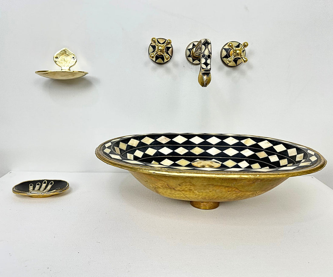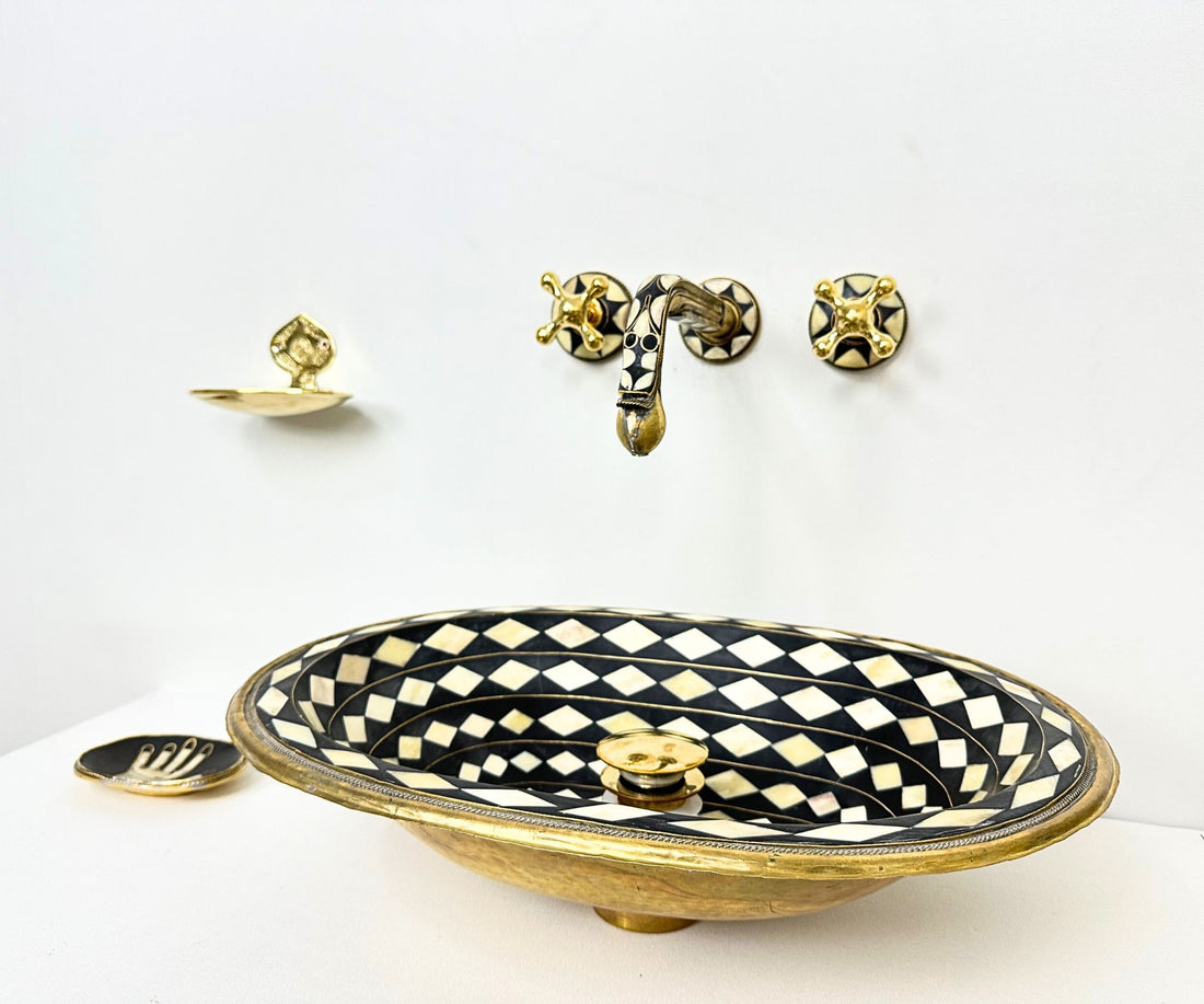 Handmade Brass Wall-Mounted Faucet – Bone & Black Resin Inlay