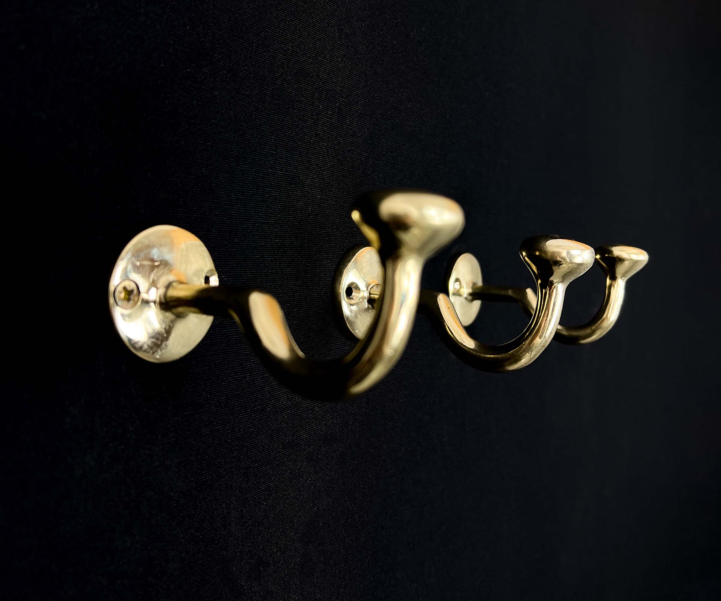 Each hook is made of solid unlacquered brass, allowing it to develop a beautiful patina over time. You can purchase a single hook or choose a set, with larger sets offering better value.