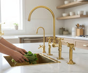 Bring elegance and everyday convenience to your home with the Unlacquered Brass Bridge Faucet Set with Sprayer & Cold Water Tap by LuxeBrass. Expertly handcrafted from solid brass, this faucet set blends traditional artistry with modern function, making it both practical and beautiful.