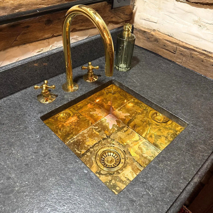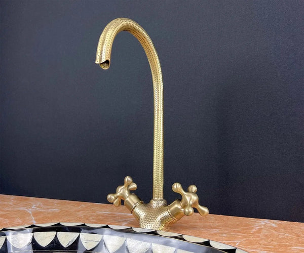 Enhance your bathroom with our beautifully crafted brass faucets Their warm golden hue adds elegance and timeless charm, while handmade craftsmanship ensures lasting quality. Over time, a natural patina